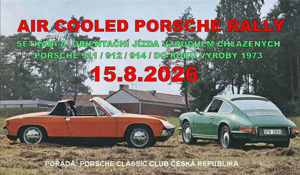 Pokud máte Porsche 911, 912 nebo 914 do roku výroby 1973, tak vás zveme v sobotu 15. srpna 2026 na společné setkání a výlet historických vzduchem chlazených automobilů Porsche.